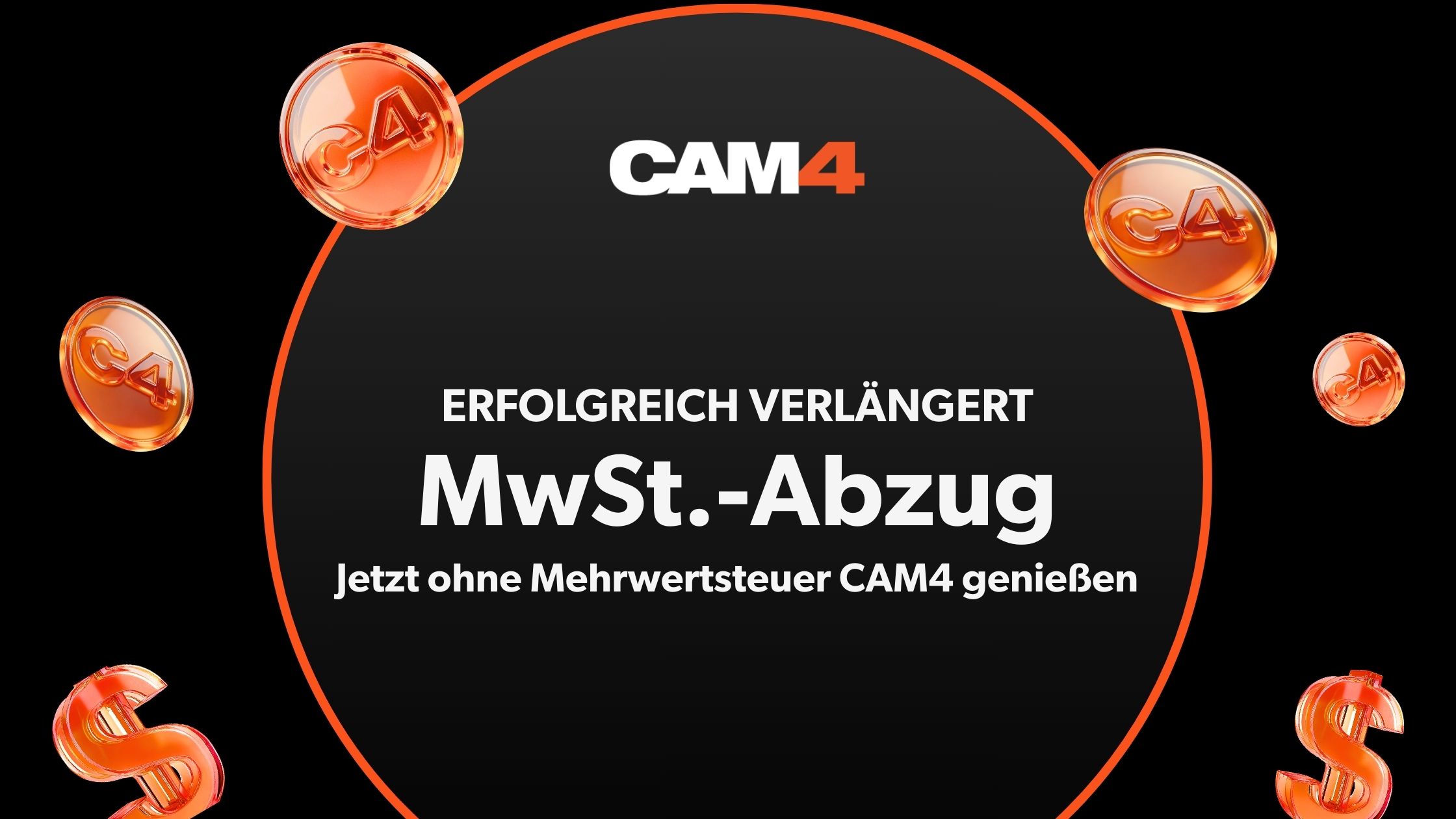 Niedrigere Kosten + Höhere Einnahmen Wir haben Neuigkeiten, die deine Erfahrung auf CAM4 verändern wird. Ab heute, und für die nächsten 3 Monate, übernimmt CAM4 die Mehrwertsteuer auf alle Käufe, die unsere Zuschauer tätigen. Ja, du hast richtig gelesen: Keine Mehrwertsteuer mehr, wenn du einkaufst. CAM4 zahlt sie für dich! Was bedeutet das für Zuschauer?